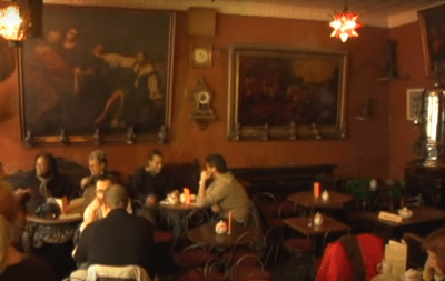 Fabrizio tells the hsitory of Caffe Reggio. He said that before Dominic Parisi opened the caffe, he had a Barber Shop in the space. A Haircut was 10 Cents and took about 20 minutes to do one. Fabrizio says that Domenico’s customers demanded a cup of Espresso with their haircut. After a while Domenico figured he’d open a caffe, as he could serve many more customers and make better profit than doing haircuts which he could only do 2 or 3 in an hour. And so Caffe Reggio was born in 1927 on Macdougal Street in Greenwich Village, New York.
