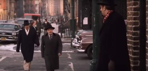 Pentangeli arranges a meeting with the Rosato brothers. Arriving at the meeting place, Pentangeli leaves his bodyguard outside and enters the bar alone. Once inside, Tony Rosato (Danny Aiello) ambushes Pentangeli with a garotte, telling him, “Michael Corleone says hello.” A policeman steps inside, and the attack degenerates into a shootout in the street. Pentangeli disappears and is believed to be dead.