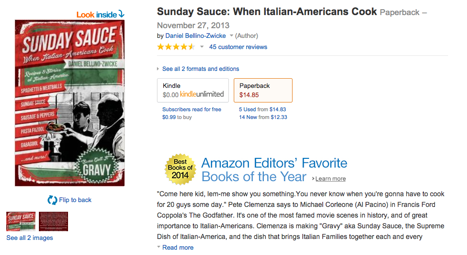 SUNDAY SAUCE has been # 1 on Amazon’s BEST SELLER LIST ITALIAN COOKBOOK for 2014 …