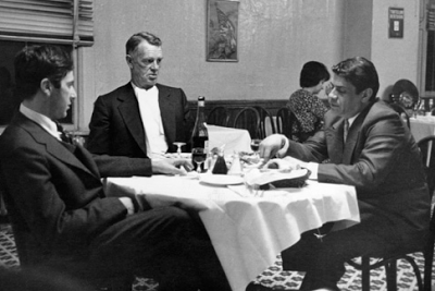 At the lunch hour peak there is waiting. The crowd is eclectic: shopping tourist couples, merchants and salesmen, an African diplomat, a bearded pop-music critic, those glamorous young men who wore Cardin suits before Cardin invented them, a sexagenarian with Lolita and at the next table a bull-necked fellow saying, “I don’t want to get myself killed.” Mother, a nervous visitor from the Middle West, wanted to leave at once. The service was polite and perfunctory. Only friends of the house were offered grindings of fresh pepper and crusty whole wheat bread.