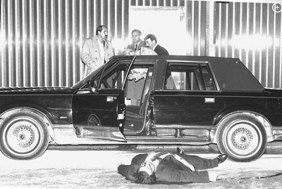 One of the gangland assassins reportedly fired a coup de grace shot into Castellano’s head before the three men fled on foot toward Second Ave. A police source said a witness saw one of the gunmen speaking into a walkie-talkie as he ran. The trio then jumped into a black rented Lincoln Town Car, with a New Jersey license plate – ABM 43Z – and made their getaway.